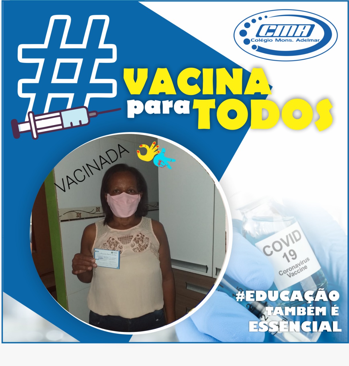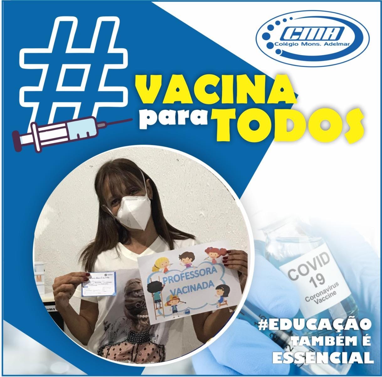 Gratidão é o que sentimos ao ver nossos professores recebendo a vacina contra o Covid-19. Continuemos em oração para que a imunização se estenda à todos os profissionais de Educação e não somente a eles, mas a toda população.