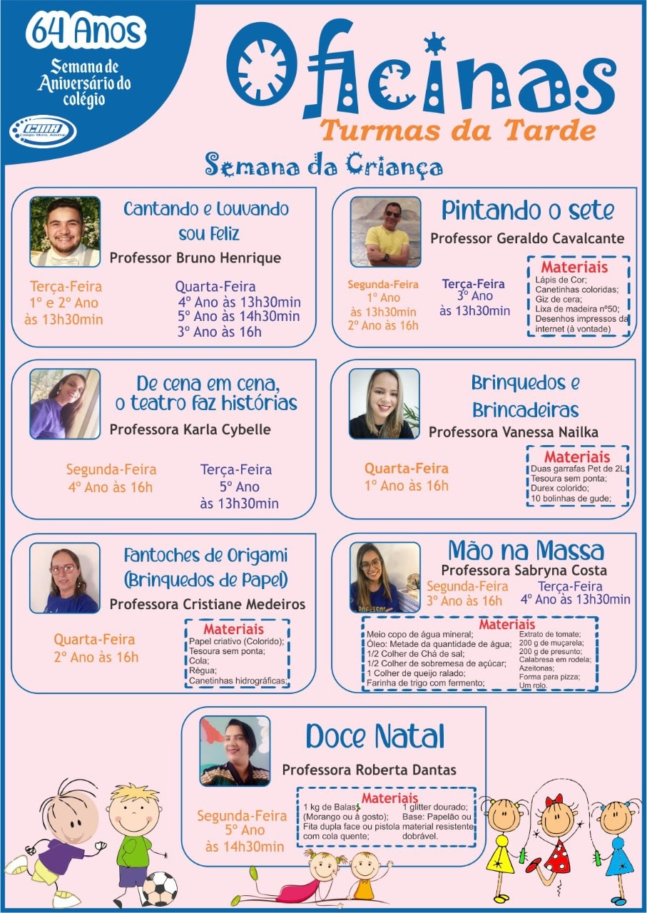Super User Destaques 06 Outubro 2020 Acessos: 1392 Oficinas Semana da Criança Por favor, avalie Votar 1 Votar 2 Votar 3 Votar 4 Votar 5 View Comments View the discussion thread. back to top Artigo anterior: Live da Fé Anterior Próximo artigo: Convite Especial - Drive-Thru CMA - Dia das Crianças Próximo