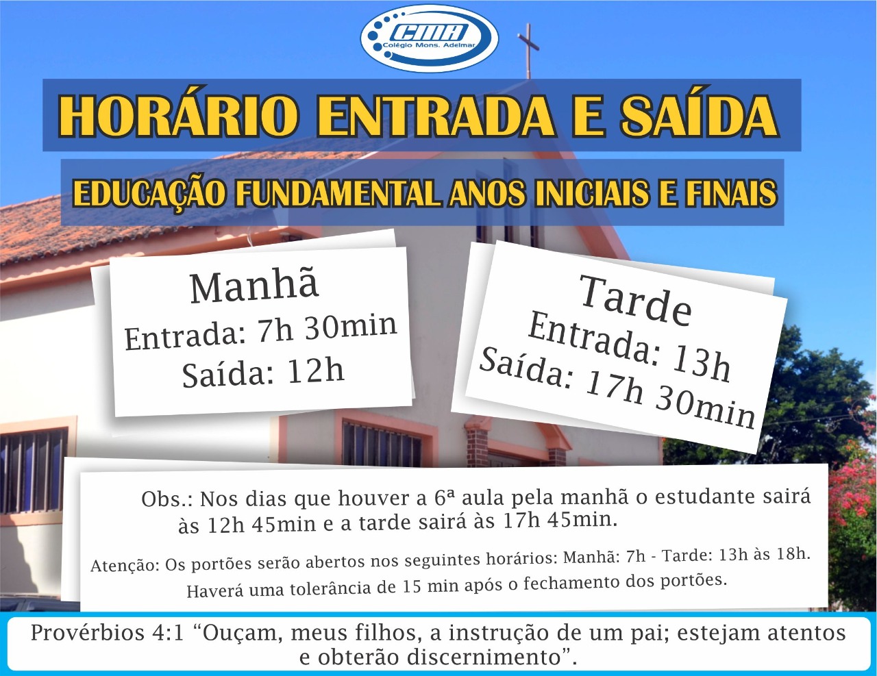 Super User Destaques 30 Janeiro 2020 Acessos: 2936 Atenção senhores pais e responsáveis. Horário de entrada e saídas. Por favor, avalie Votar 1 Votar 2 Votar 3 Votar 4 Votar 5 View Comments View the discussion thread. back to top Artigo anterior: Volta às aulas e as novidades chegando! Anterior Próximo artigo: Cronograma Fevereiro 2020 Próximo