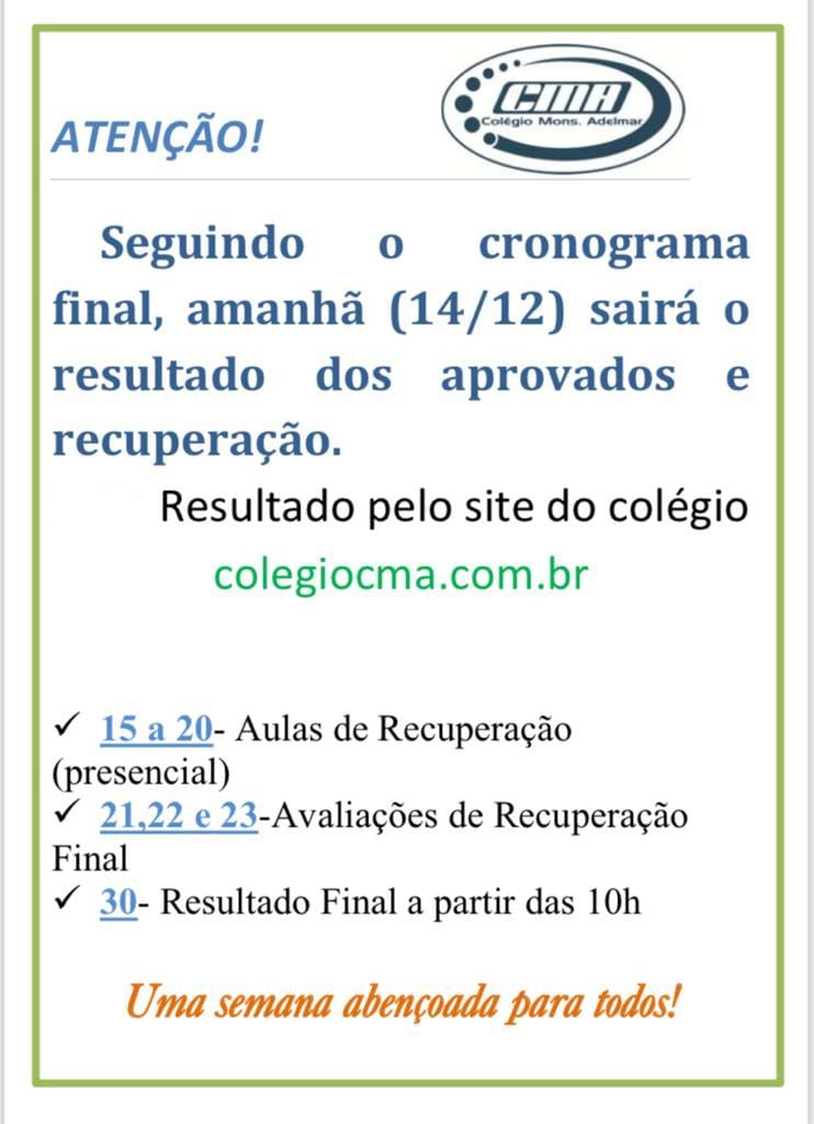 Super User Destaques 13 Dezembro 2021 Acessos: 1428 RESULTADOS DOS APROVADOS E RECUPERAÇÃO Add a comment