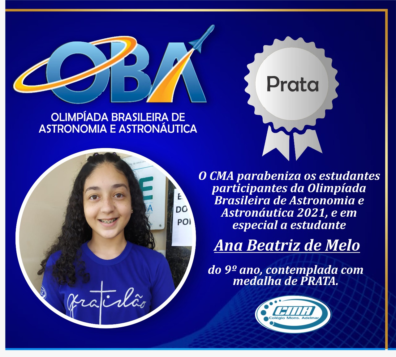 Super User Destaques 23 Agosto 2021 Acessos: 1138 O CMA parabeniza os estudantes participantes da Olimpíada Brasileira de AStronomia e Astronáutica 2021 Add a comment Leia mais...
