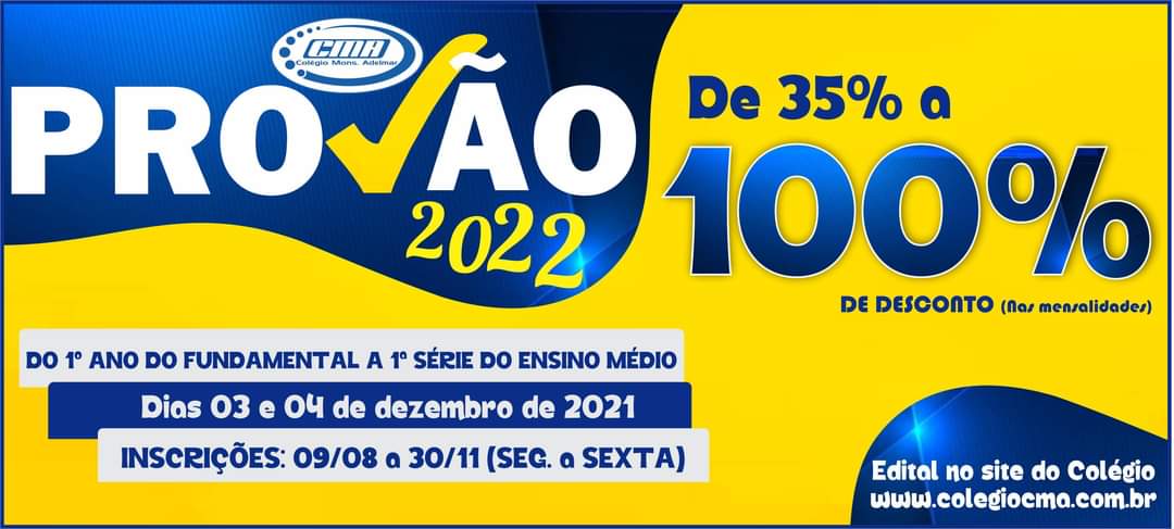 Super User Destaques 23 Agosto 2021 Acessos: 2807 Abertas as inscrições para mais uma edição do PROVÃO CMA Add a comment Leia mais...