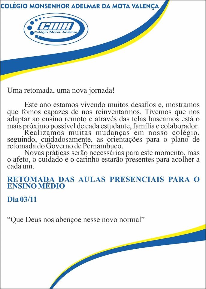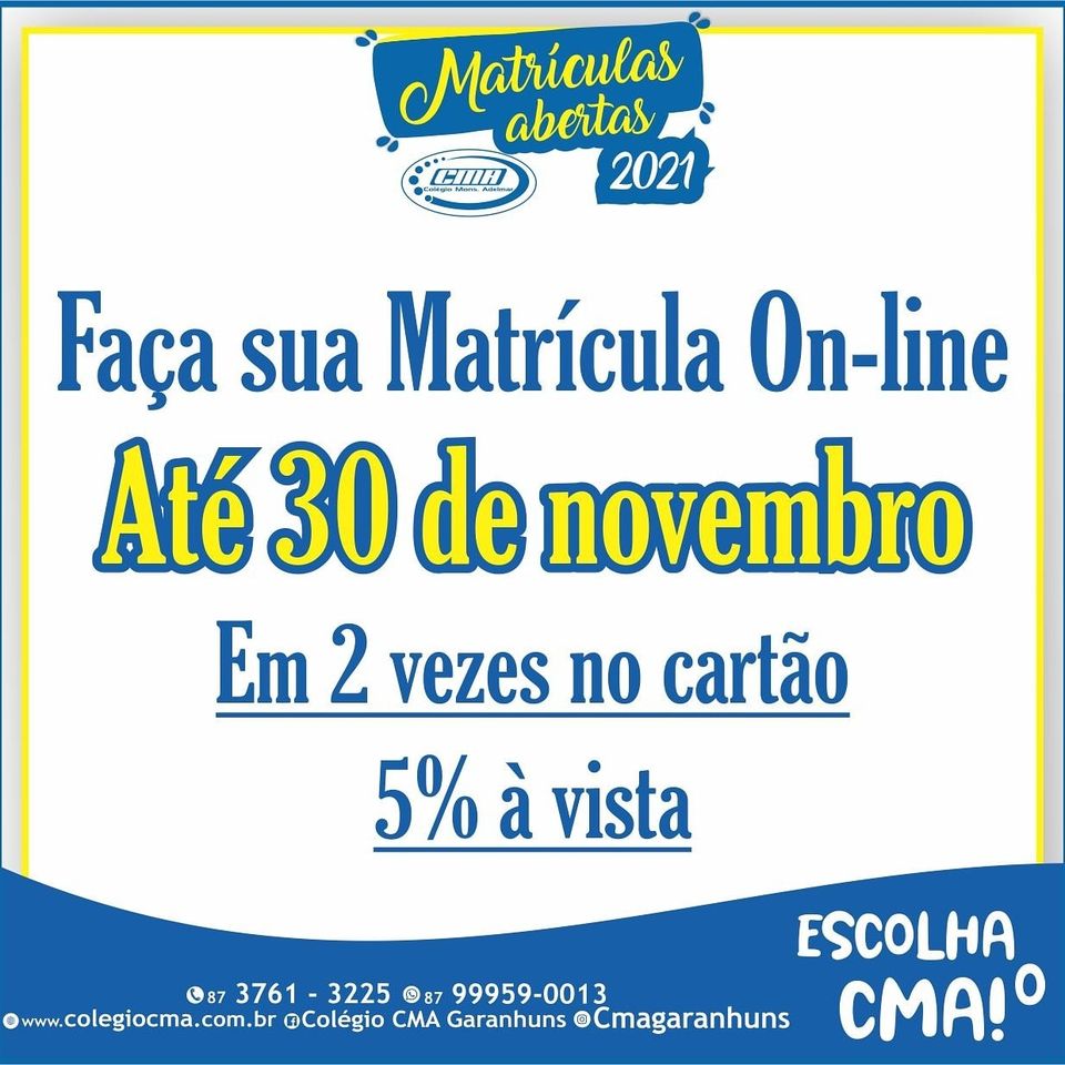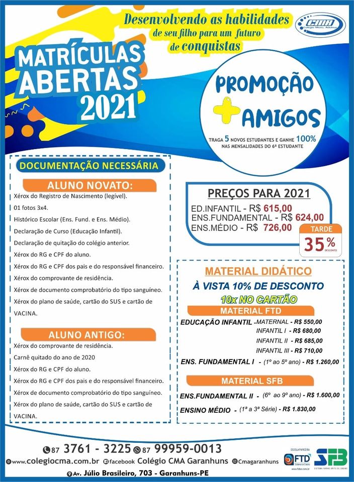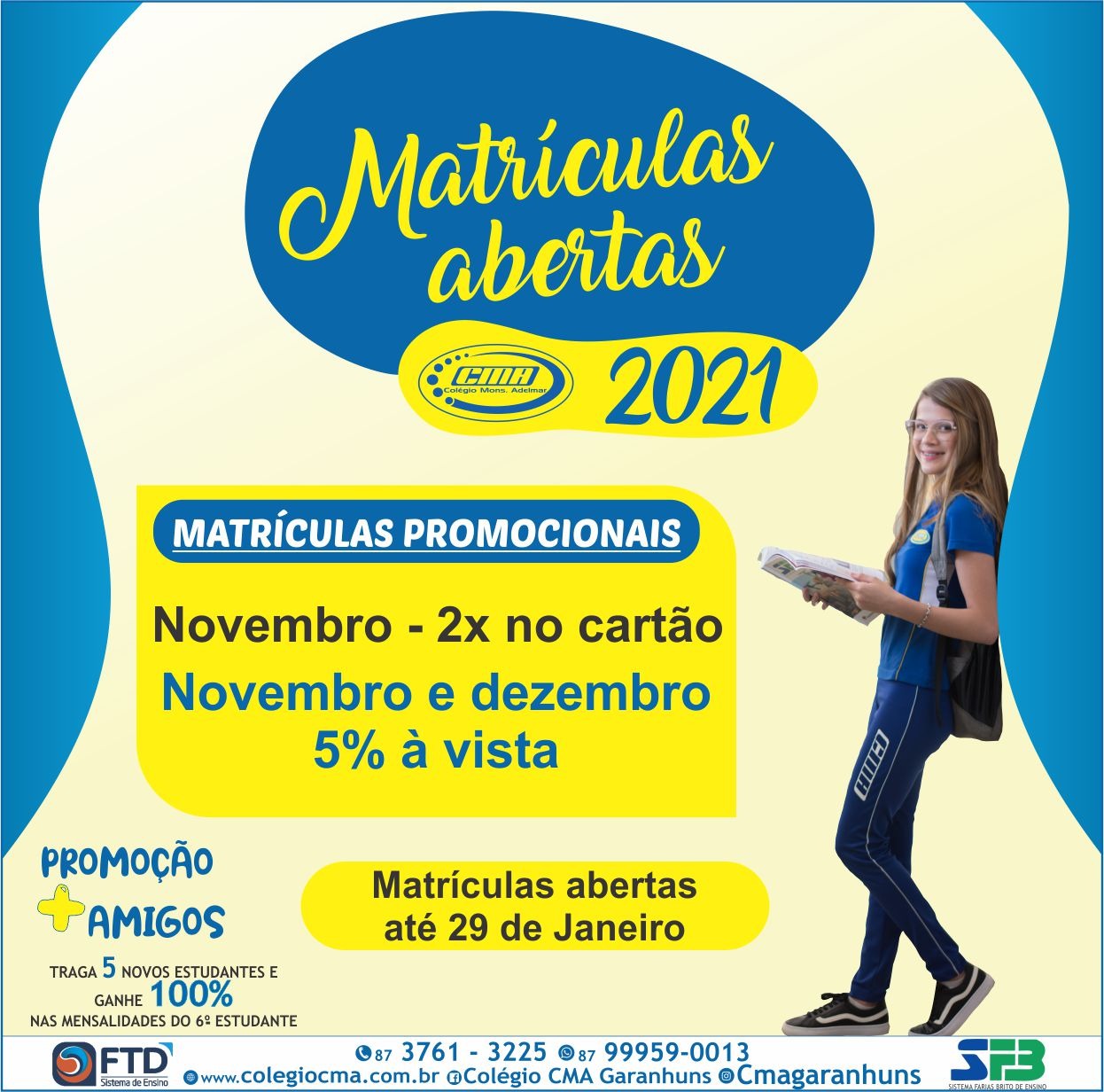 Super User Destaques 22 Outubro 2020 Acessos: 1361 CMA - 64 ANOS - MATRÍCULAS ABERTAS 2021 Add a comment