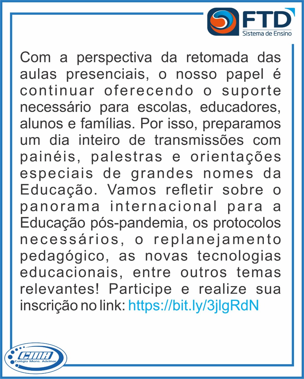 Super User Destaques 01 Setembro 2020 Acessos: 1636 Webinário Internacional On-line: Cenário Mundial da Educação Pós-Pandemia Add a comment Leia mais...