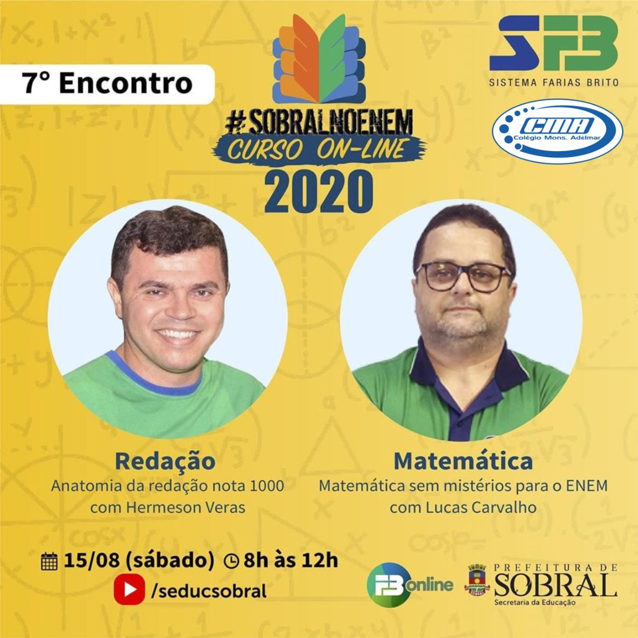 Super User Destaques 14 Agosto 2020 Acessos: 1183 7º ENCONTRO #SOBRAL NO ENEM - CURSO ON-LINE 2020 Add a comment