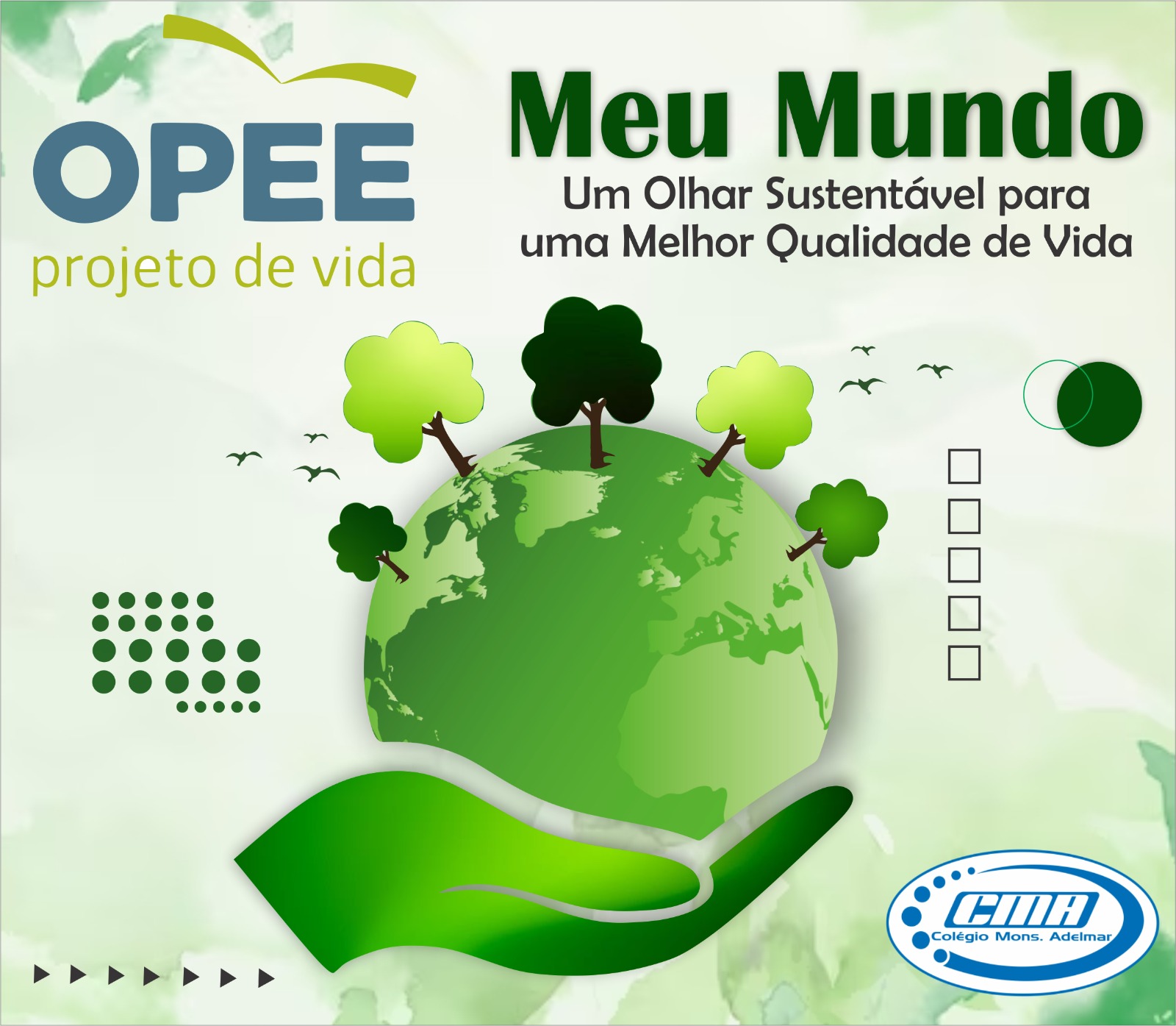 Na oportunidade, também vamos apresentar o projeto: “Meu Mundo: Um Olhar Sustentável para uma Melhor Qualidade de vida”. Norteado pela ORIENTAÇÃO PROFISSIONAL EMPREGABILIDADE E EMPREENDEDORISMO. (OPEE)