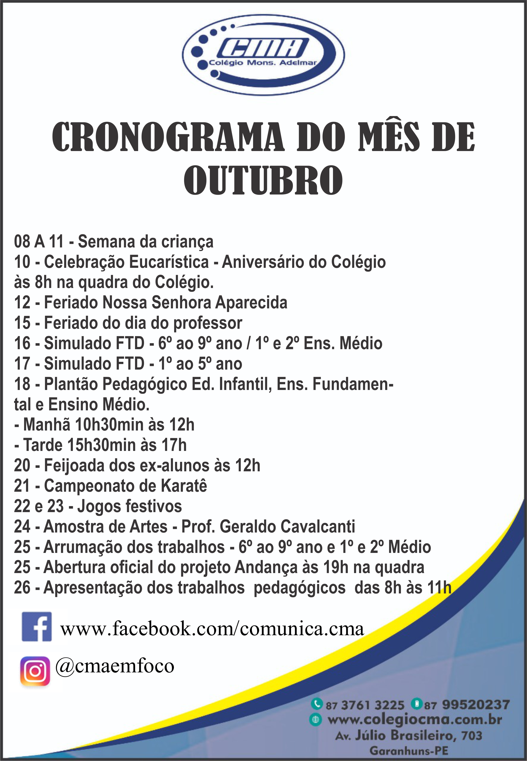 Super User institucional 20 Novembro 2018 Acessos: 11327 Cronograma Outubro Por favor, avalie Votar 1 Votar 2 Votar 3 Votar 4 Votar 5 View Comments View the discussion thread. back to top Artigo anterior: Cronograma Novembro Anterior Próximo artigo: Cronograma Setembro Próximo