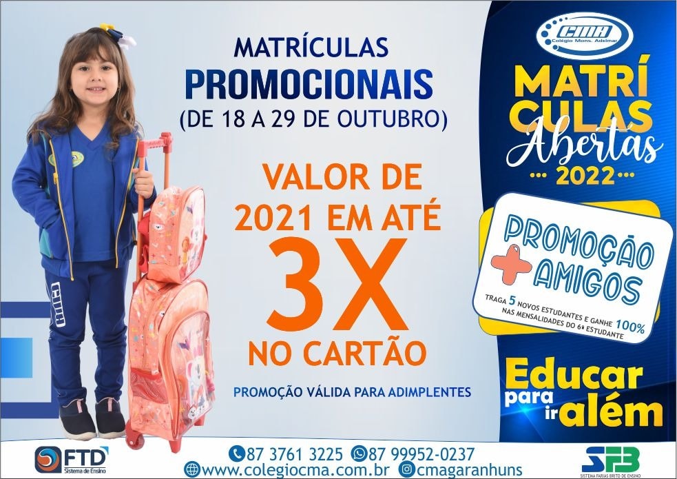 Então, não perca tempo, venha correndo realizar a matrícula do seu filho(a) com o valor promocional do mês de outubro.